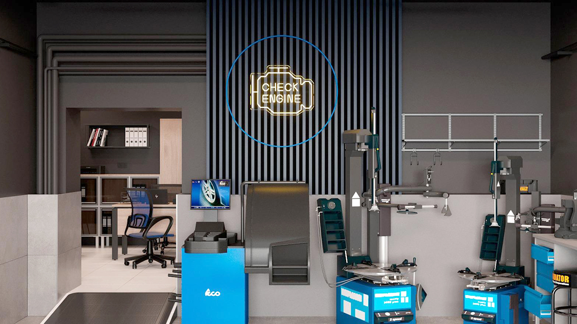 Для тех, кто ценит стиль лофт, реечные стены — это отличное решение для добавления текстуры и разделения пространства. Один из проектов демонстрирует офис с открытыми серыми трубами, придающими пространству индустриальный стиль. Половина стены сверху и потолок окрашены в серый цвет, что гармонирует с белой отделкой, имитирующей камень. Голубые элементы мебели и неоновая вывеска на серой реечной стене делают интерьер современным и ярким. Такой дизайн выглядит смело и современно, добавляя оригинальности офису.