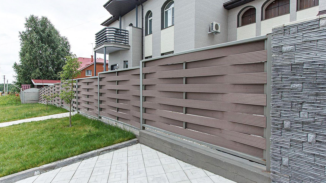 Существует несколько видов заборов из древесно-полимерного композита, различающихся конструкцией и назначением.